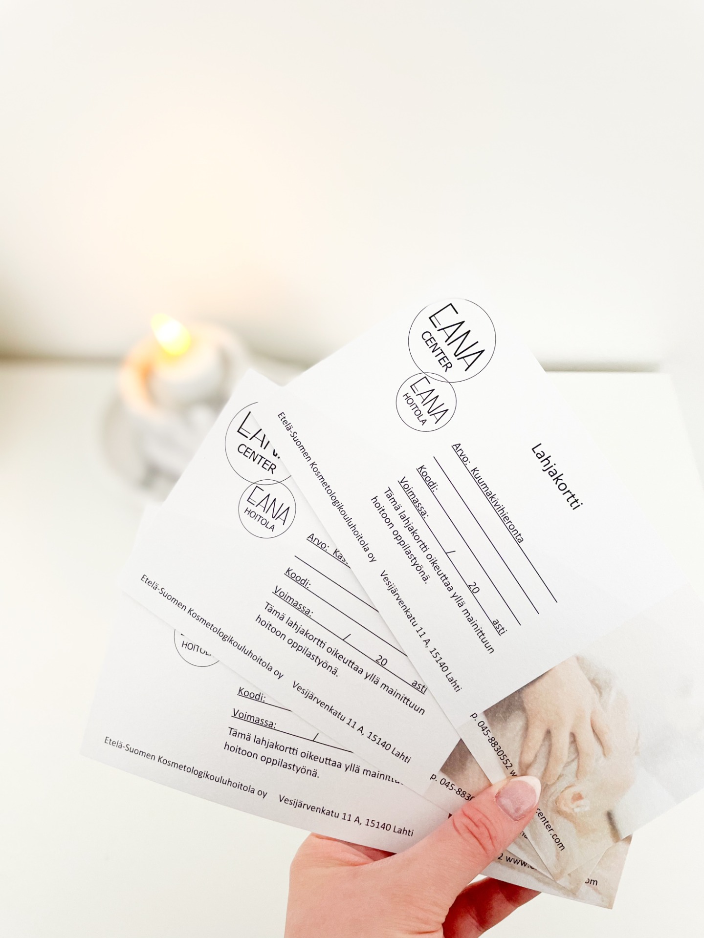Haluaisitko antaa läheisellesi hetken irti arjesta - jotakin, mikä todella hemmottelee ja palauttaa? Eana Centerin lahjakortit ovat ajaton ja aina yhtä ilahduttava lahjaidea. Ne sopivat erinomaisesti syntymäpäivään, kiitokseksi tai juuri siihen "vain koska" -hetkeen, kun haluat yllättää tärkeän ihmisen.